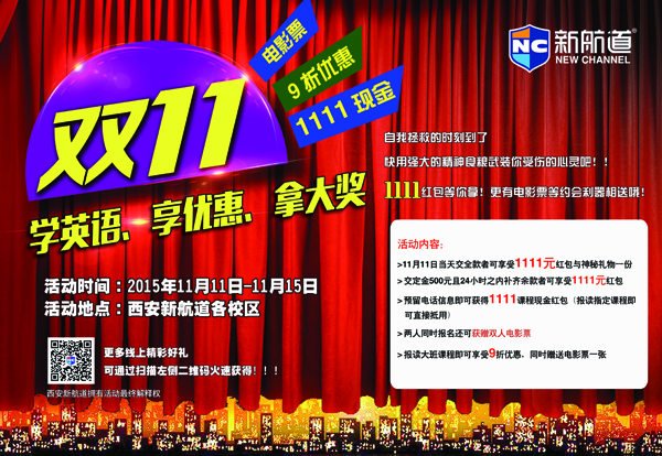活动主题:【学英语、享优惠、拿大奖】双11别空虚 1111红包填充你
